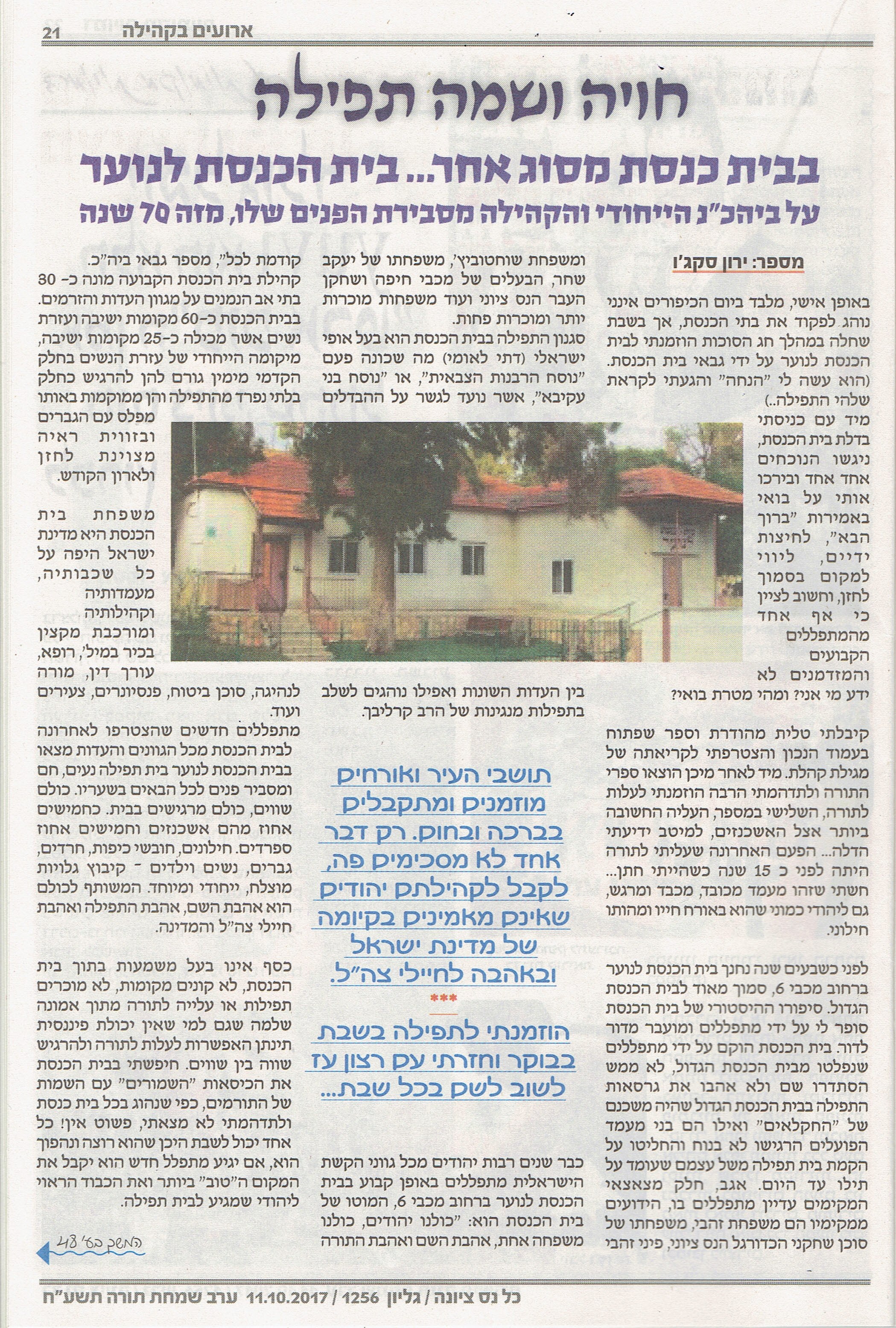 כותבים עלינו כתבה עלינו בעיתון כל נס ציונה מתאריך 11.10.17 הכנסת מכשיר החייאה defibrillator בבית הכנסת במעמד ראש העיר מר שמואל בוקסר בתמונה ד"ר צרפתי מדריך את מתפללי בית הכנסת כיצד להשתמש במכשיר